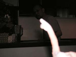 料理を作ってるお店の人。(良く言うと)ジャンレノ似のおもしろいオジサンです。